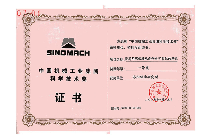 中國機械工業(yè)集團科學(xué)技術(shù)獎一等獎